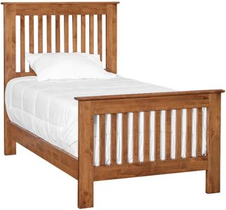 The Archbold Furniture Shaker slatted twin bed embodies simplicity and timeless craftsmanship. Handcrafted from solid wood, this bed showcases the clean lines and understated elegance characteristic of Shaker design. Its sturdy slat headboard and footboard offer both style and durability.Read More