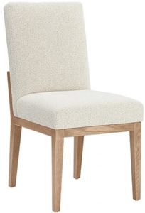 This side chair features a solid oak frame paired with upholstery in oatmeal boucle performance fabric, offering both durability and style. Its elegant design makes it a versatile addition to any living space or dining area.Read More