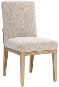 This side chair features a solid oak frame paired with upholstery in gray boucle performance fabric, offering both durability and style. Its elegant design makes it a versatile addition to any living space or dining area.Read More