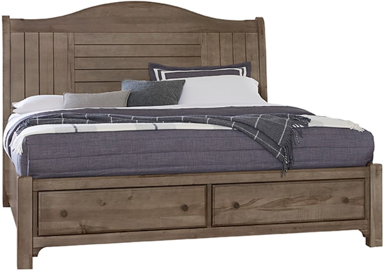 This Cool Farmhouse sleigh bed shown in grey finish with footboard storage evoking a feeling of warmth and comfort crafted of North American maple solids and veneers, this piece will definitely add style to your bedroom.Read More